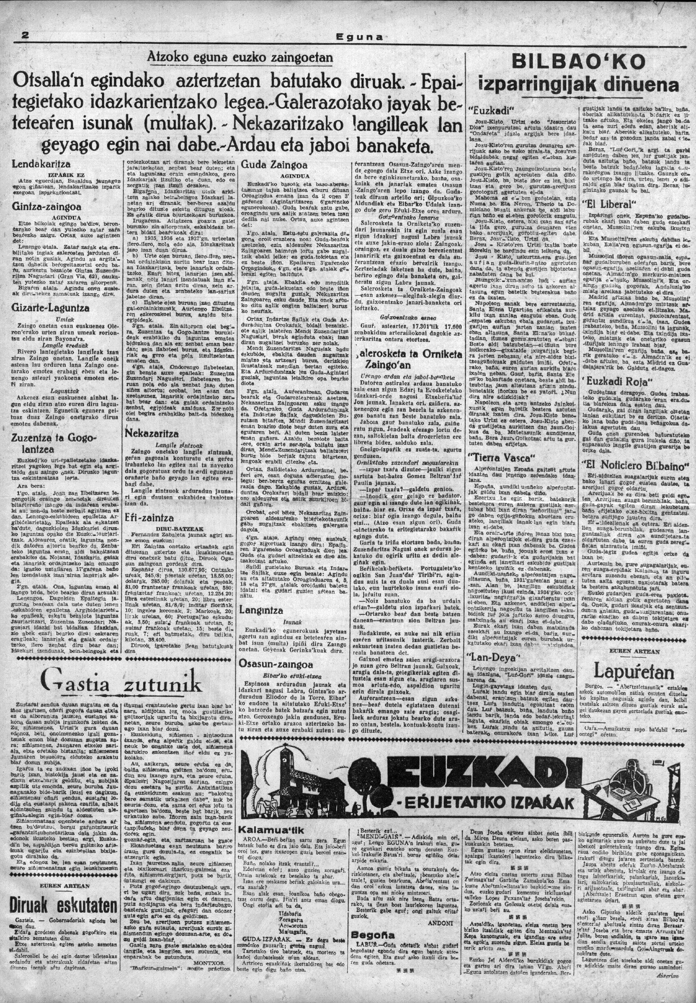 Izenburua: El Noticiero Bilbaino, El Liberal, Euzkadi, Tierra Vasca, Lan-Deya, Euzkadi Roja