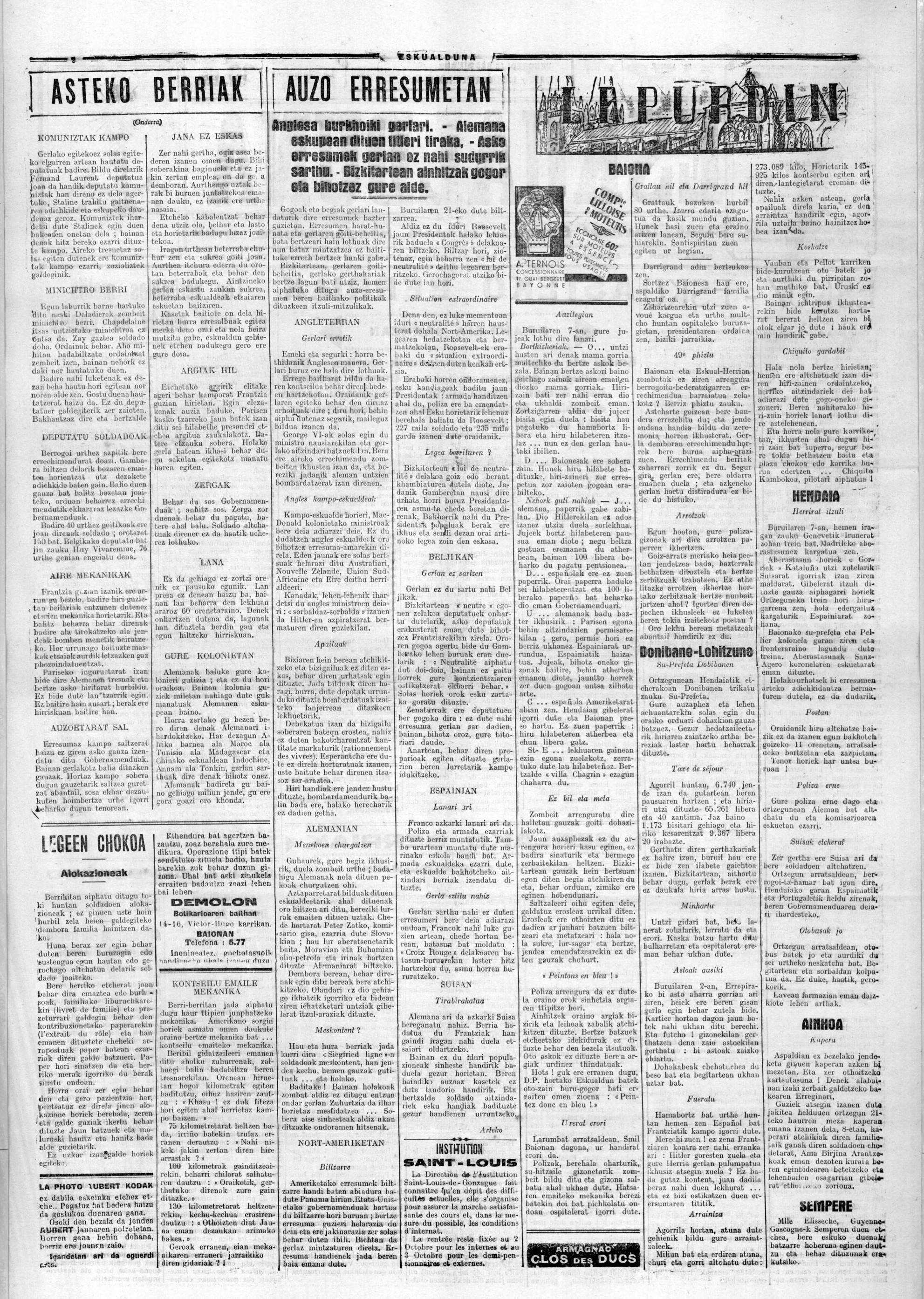 Eskualduna (2055. zbka.) 1939-09-15 orriak: 1 - 2 - 3 - 4