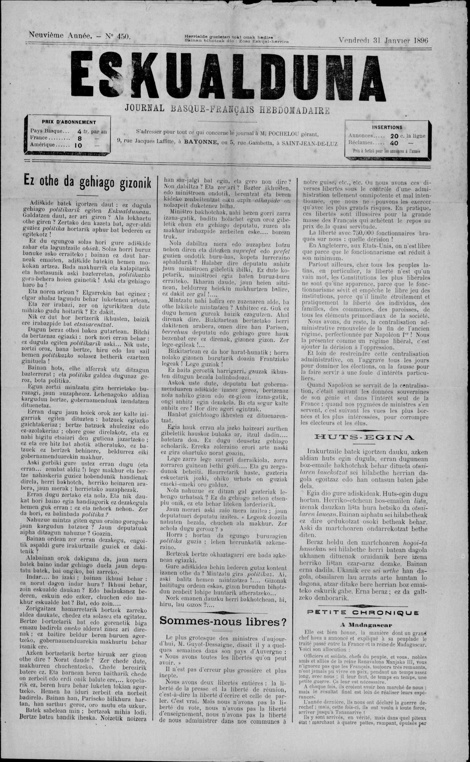 Eskualduna (450. zbka.) 1896-01-31 orriak: 1 - 2 - 3 - 4
